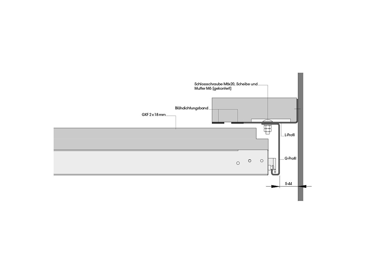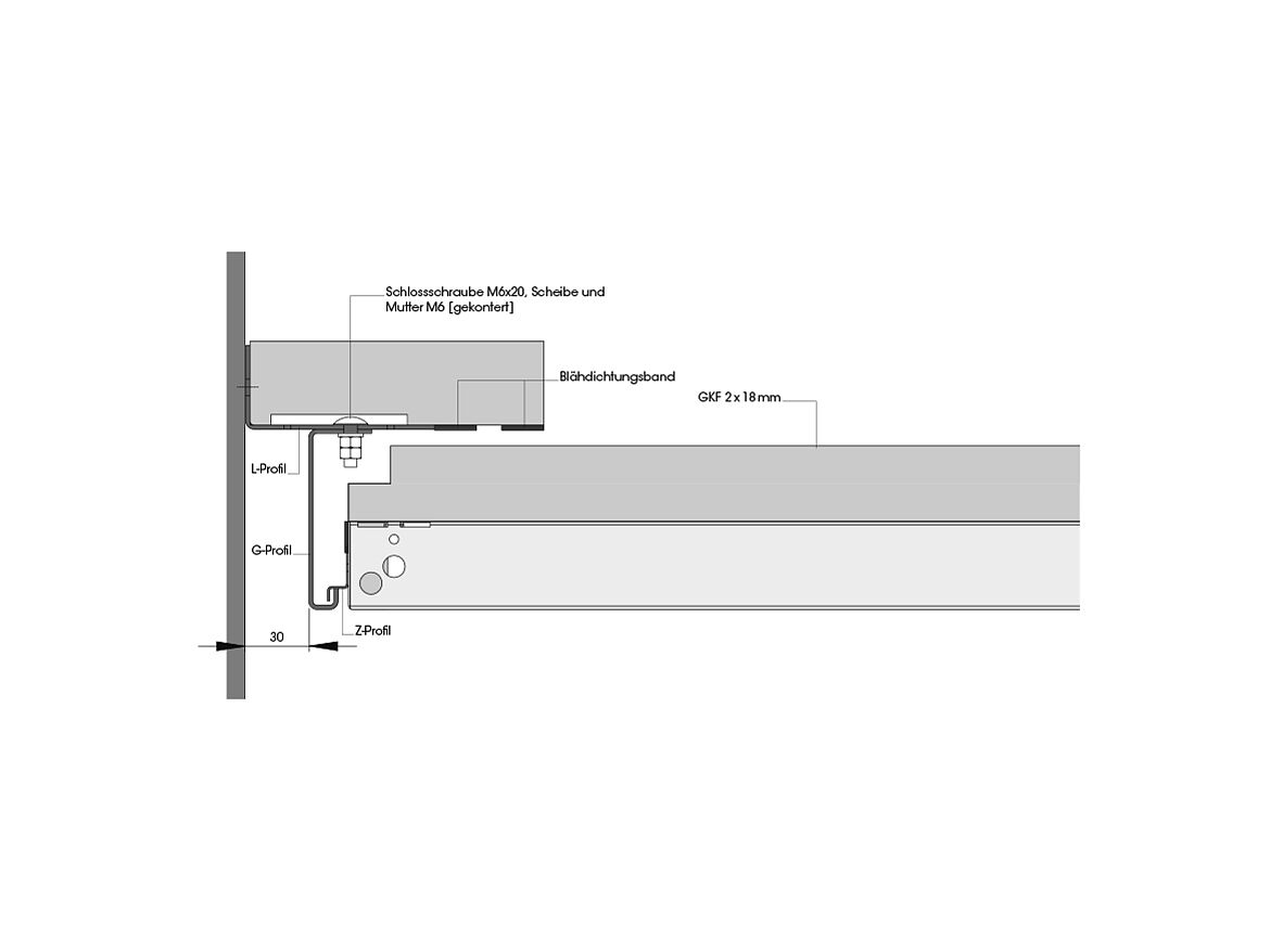Die Brandschutzplatte ist auf der Rückseite zweifach mit Gipskarton-Feuerschutzplatten [GKF] beplankt; mit längsseitigem Überstand und werkseitig angebrachten Quellstreifen. An den Plattenstirnseiten befinden sich zwei Auflager und zwei Schubriegel. Letztere gewährleisten die werkzeuglose Demontage der Platten.