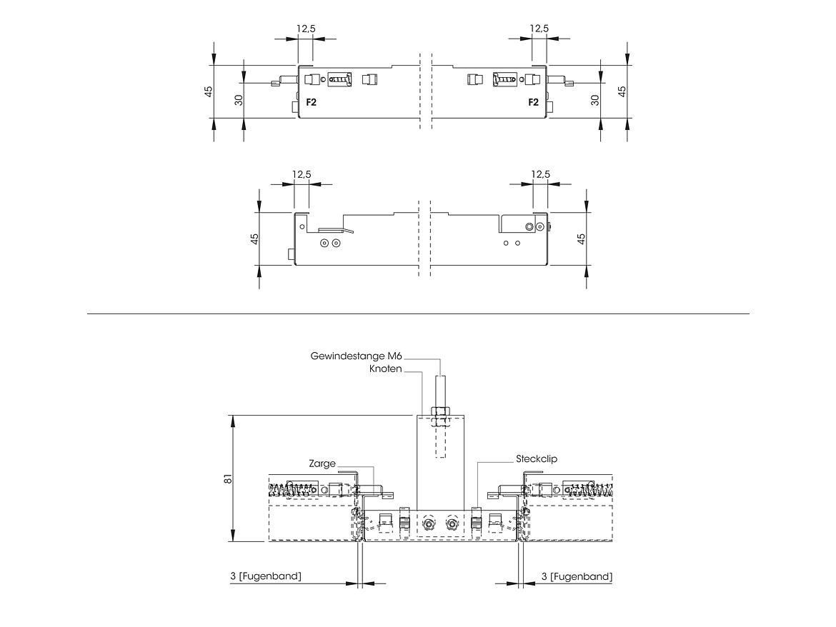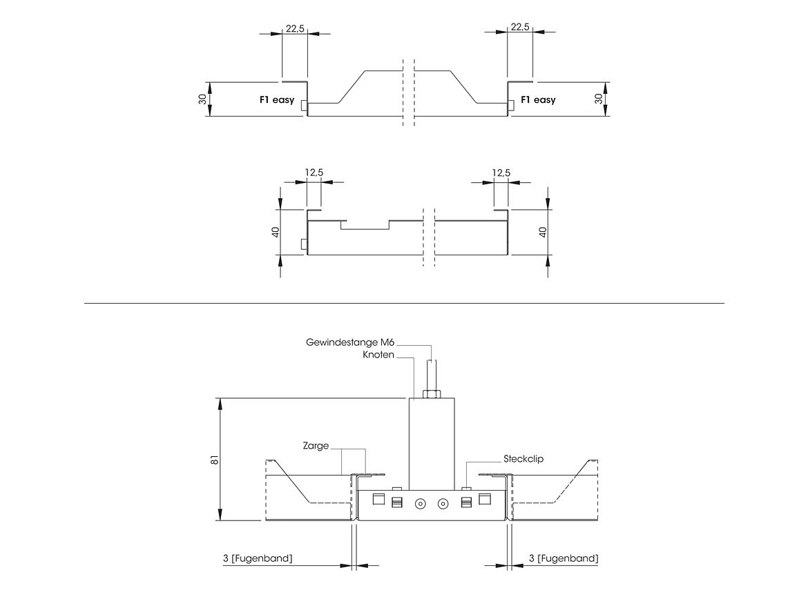 Breite: ≤ 900mm (Grössere Breiten sind nach Absprache möglich. Eventuell sind zusätzliche Massnahmen zur Minimierung des physikalisch bedingten Durchhangs notwendig.)