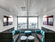 Das Knoten-Bandrastersystem HAAG 6 besitzt eine Unterkonstruktion aus längs- und querlaufenden Profilen, was ein symmetrisches Deckenbild erzeugt. Das Metalldeckensystem ermöglicht auch eine variable Raumaufteilung, indem verschiebbare Trennwände bei Bedarf an den parallel verlaufenden Bandrasterprofilen befestigt werden.